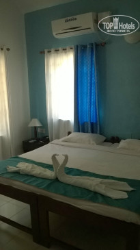 Были парой 14 дней февраль - март 2024г. Отель представляет собой комплекс из 2х этажных вилл. Номера- студио- однокомнатные и сьюты- огромные двухкомнатные, все с отдельным входом, с большой верандой. Потолки- более 3 метров, так что воздуха хватает. Кондиционер только в спальне, в остальных помещениях- вентиляторы, в том числе в некоторых номерах и на верандах. Холодильник, принадлежности для чая и кофе, пополняются ежедневно , плюс по 2 литровых бутылки воды. Постель и полотенца чистые, меняют по запросу, как и уборку номера - спрашивают каждый день что убрать. По русски почти никто не понимает все на английском и "жестовом". Свой выход на пляж, сразу песок. Стоит симпатичный улыбчивый парень, спрашивает кто такие, из какого номера :).Сразу же три шей ка. все хорошего качества, я бы не выделил ни один из них.Бассейн небольшой, вокруг лежаки , но пользуется популярностью только у индийских гостей, которые его постоянно оккупируют. Но есть при бассейне человек, выдает бесплатно полотенца и ненавязчиво рекомендует посетить душ перед входом в бассейн.Главное: отель практически полностью переориентировался на местных туристов. Постоянно заезжают по 20-30 человек какие то делегации, банкеты, слёты, мы даже поприсутствовали на свадьбе. Поэтому кухня в отеле сугубо индийская, все острое и незнакомое. Мы в городе покупали сыр. творог и этим разбавляли завтраки.Отель очень удачно расположен- практически в центре городка, все в пешей доступности. В целом остались довольны, особенно отношением персонала.