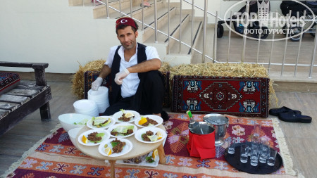 На ужин всегда спец блюдо, которое готовили чуть в стороне от главной раздачи пищи. Было: ягнёнок сваренный, язык, форель, индейка жареная, кура гриль и пр.