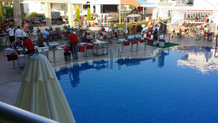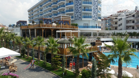 Есть конечно плюсы. Но для меня минусы их перечеркивают. Приехали в отель около 8 утра. Заселили нас в половине первого, но сразу по приезду отправили на завтрак, потом предложили переодеться в фитнесс центре и сходить на пляж, что мы и сделали. Спасибо большое Иванне очень хорошая сотрудник ресепшена. Номер скромный, но чистый и уютный, жили в бунгало недалеко от главного корпуса, очень удобно что две комнаты, отдыхали с ребенком подростком. Первое впечатление очень хорошее. Кошмар начался вечером когда началось мини диско, а затем представление для взрослых. Все это проходило на такой громкости что не возможно находиться в номере. Возможно для кого то это мелочи, но у нас время +4 часа к Турецкому, т. к представление заканчивалось в 23.00 по местному, нам всем очень хотелось спать гораздо раньше. Сомневаюсь что где то было его не слышно. Для меня очень важно ложиться спать на отдыхе тогда когда я хочу, а не тогда когда перестанет гудеть весь отель. А также нетрезвые немцы могли горланить по ночам это в порядке вещей.Это очень большой минус. Еда в отеле ужасная, очень однообразная. На завтрак вообще есть нечего. На обед и ужин можно найти, голодными не будете, но разнообразия никакого. Еще один минус для меня это пляж. Знала что далеко, но ходит автобус. Автобус действительно ходит, очень часто, ехать две минуты, но остановка перед пляжем где вас высадят находится на помойке с жутким запахом на жаре,что очень портит впечатление. Лежаки на пляже стоят просто вплотную друг к другу никакого личного пространства нет.Контингент отеля на 90% немцы и турки. Все эти товарищи просто безбожно курят одну за одной. Причем курят везде. Я понимаю что отель 4* и не ожидала от него как от пятерки, но мне кажется что он с трудом дотягивает до тройки. Море с хорошим заходом, песочек теплое очень комфортное. Наверно это самый главный фактор за которым мы приехали. Но лично для меня помимо моря важно питание и сон тогда когда я хочу. Возможно если ваши часовые пояса разнятся не столько вам будет комфортно. Отзывов об отеле немного наверно потому что русских там очень мало, хотя персонал( спасибо ему за это) мало мальски по русски пытается общаться, чего не скажешь про guest relation которая по русски вообще не говорит.