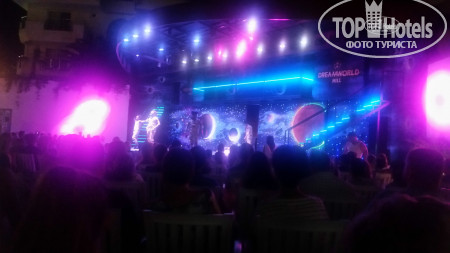 Сцена, где проходили шоу. В 20:30 детская дискотека - одна и та же каждый день. в 21:00 взрослое шоу до 22:30. Были прикольные выступления.