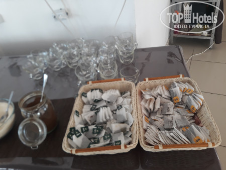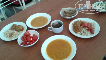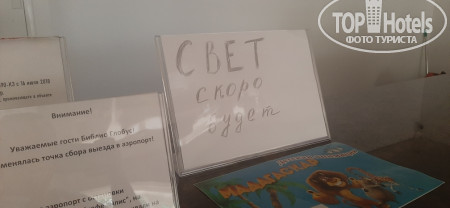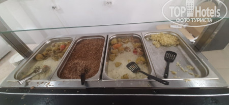 Это все мелочи. На улице - окурки, грязь, неуют, никакого цветочка нигде. Хозяйка этого корпуса - колоритная крупная блондинка лет за 50 орет на каждый вопрос, иногда и с матерком. Просто как в кино. Не верите? Сами съездите и посмотрите. Пока мы там жили, люди приезжали (в соседний номер например) и тут же растворялись. Мы тоже все хотели переехать куда-нибудь, даже обошла несколько соседних отелей, но пожалела денег. Все-таки УПЛОЧЕНО, БЛИН. А зря. Надо быдло переехать. Хоть радость получила бы. Везде, куда заходила (даже слева первый же от этого отеля) - там такая любовь к людям! Обошла 3 отеля - везде прекрасно! Только у нас был срач и хамство. В столовой (другой корпус) идти туда кстати не очень приятно - мимо какого-то хлама на улице, огромной банки с окурками (типа место для курения), ну да ладно, еда 0 обычная, у нас были только завтраки. А вот обслуживание! Молодые парни в черных длинных фартуках носятся , вообще не обращают внимания на просьбы, вопросы. Наверное, чувствуют себя такими почти столичными крутыми ребятами. Не знаю почему так себя ведут. Как на подбор - демонстрируют, что они тут главные, а вы - мусор. "Скажите, а ложки принесут?". "Принесут". "А когда?". "Когда-нибудь". Вот такой был диалог, например. на меня не глядя, разумеется. ОООчень важные ребята. Бассейн все время в тени и вода - ледяная. На картинке красивый, а толку? И вода там сообщается, переливается поверх бортика между детским и взрослым отделением, уровень воды выше бортика. Я все думала, неужели трудно уменьшить на 10-15 см уровень, чтобы вода в детском бассейне прогревалась (все-таки, мелко, должна нагреться). Но нет - они там не заморачиваются над такими глупостями. Ледяная - так для всех! А на прошанье, когда мы уже ждали автобус в аэропорт, я стояла молча, а женщина какая-то ругалась с девушкой с рецепции. И вдруг та девица ни с того с с сего обращается ко мне и говорит: "А Вы тут как обезьяна ходили и все снимали". Я аж дар речи потеряла. Стала ее фотографировать, а она - меня. И ни о чем она не волновалась. Не знаю, правда или нет, но одна женщина там сказала, что этот отель недавно купил сам БиблиоГлобус. И поэтому жаловаться некому. Не знаю, правда или нет. Но я тех вор решила, что в этим туроператором больше дел иметь не буду.