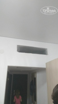 Чайника нет, сушилки нет, утюга нет. Есть маленький холодильник. Есть кондиционер. Интернет ни один, ни другой не работает. В душе вода еле еле сливается.