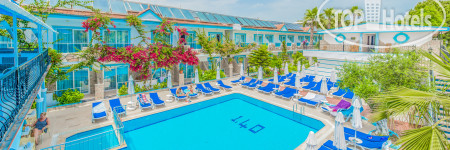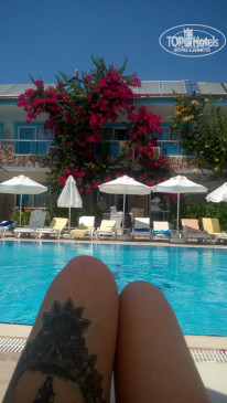 Отдыхал в этом отеле в середине августа с женой и сыном. Приехали рано утром . нас пригласили на завтрак и уже в 10-00 заселили и при. Очень дружелюбный персонал. Номер свежий, все работало Понравилось отношение и обслуживание. До пляжа идти 8 минут. Сам пляж небольшой. но места на пляже всегда были. Лежаки и тенты свежие, Многие постояльцы отеля предпочитают отдыхать у бассейна и на море не ходят совсем Раздевалок и душа нет- это небольшой минус. Питание для трехзвездочного отеля очень хорошее, в других трешках , в которых я отдыхал питание было скромнее. Несколько раз были блюда из рыбы, один раз давали суши, были интересные блюда из мяса. Из фруктов постоянно были яблоки. апельсины, арбузы, дыни . некоторые блюда показались слишком острыми-для нас это небольшой минус. Отличное расположение отеля - в шаговой доступности -старый город, храм Апполона, магазины, набережная. Русскоязычных туристов в отеле очень немного. в основном англо- и немецкоговорящие. Хорошо оборудована территория отеля, много зелени. есть вольер с попугаями. Анимации нет. Для нас это скорее плюс, чем минус. Один раз вечером было выступление танцоров- молодые ребята танцевали современные танцы. Нам понравилось.