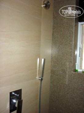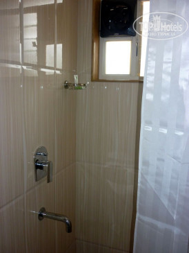 Санузел совместный, разделен шторкой, и немного неудобно что душ и туалет находятся на одном уровне - вода из душа растекается по всему полу помещения. Вид с балкона на бассейн. На балконе пластиковый стол и два стула, вполне удобно вечером посидеть. Мини бара нет, но приносят 2 бутылки воды в сутки. Также, можно заказать еду в номер, цены приемлимые, такие же как в кафе и шеках поблизости.