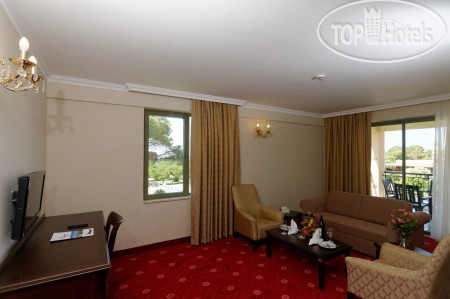 Отель безупречно расположен для тех,кто боится долгих трансферов (рукой подать до аэропорта). Шезлонгов — как песка на пляже, войну за место вести не придется. Вход в море удобный, питьевая вода вездесуща, а пиво в бутылках — настоящий гастрономический хит сезона. Персонал неизменно вежлив, а аквапарк не дас заскучать детям.