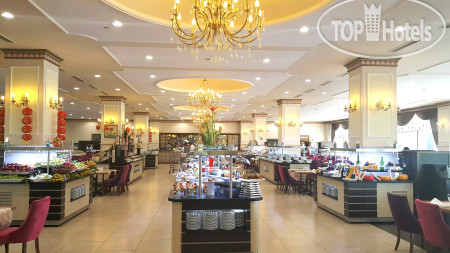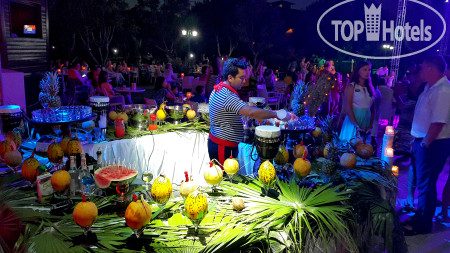 Питание в отеле, как сказали туристы из Германии: «Третий сорт…». Разнообразным были только сыры и фрукты, а вот с едой на ужин были настоящие проблемы. Каждый день давали курицу, иногда говядину, а вот рыбы практически не было. 1 раз выдавали по кусочку жареную форель, всё остальное время был пангасиус. Роллы крутили каждый день, но они были не с рыбой, как мы привыкли, а с зеленым луком или морковью или болгарским перцем. Завтраки стандартные. Радость была только на обед и это большой плюс этого отеля: A la carte рестораны на обед работали как закусочные и можно по меню было вкусно покушать. Вот обслуживание во всех ресторанах было достойное. Персонал настоящие профессионалы и их нельзя не выделить. На столах всегда стояли брендированные большие салфетки (еще одна замашка на Premium), а вот солонки были староваты, на них местами выступала коррозия. Столов всегда хватало.