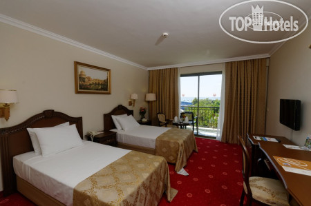 Номер deluxe standard land view очень маленький и на 4 человек только 2 односпальные кровати. Доп. кровать поставить просто не куда. Но мы не расстроились, а просто сдвинули эти 2 кровати. Номер полностью отремонтирован и даже есть замашки на Premium, такие как: кожаные мусорка, подставка под пульт от телевизора и салфетница. А также подсветка в шкафу с одеждой, но на этом всё! На 4 человек 6 вешалок, 1 полка и 2 маленьких ящика. Отсутствуют заявленные в описании номера халаты. Косметические принадлежности нам принесли, только на 4 день, когда мы обратились на стойку Guest Relation. Причем, принесли только шампунь в маленьких дешевых баночках, а не ту косметику, какая показана на фото. Сам ремонт сделан на скорую руку, так как везде есть недочеты (например: не хватило плитки, просто замазали затиркой). Душевая кабина закрыта стеклом на половину и когда Вы принимаете душ, на полу туалетной комнаты образуется лужа и пока она не высохнет, в нее не зайти. Плитка в душевой, также помыта на уровне глаз. А всё, что выше, никто после ремонта не протирал (строительные разводы, везде размазанная затирка для плитки и просто пыль).
