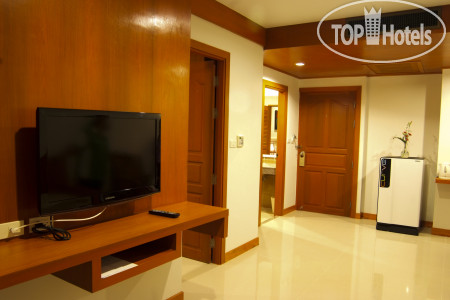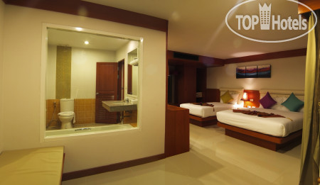В номере все было исправно, кроме кондюка. Сначала после включения я вообще в ужас пришел - внешний блок гремел жутко. Прописал ему пендель - жизнь наладилась. У него корпус снизу вообще отржавел от всех гаек - просто лежит не пойми на чем и болтается от вибрации. Надо найти положение, чтобы при вибрации не задевал стационарные части, не долбил по ним - удалось. Внутренний блок издает жуткие звуки, когда включаешь в режиме качания шторкой - надо просто не включать этот режим, зафиксировать шторку пультом - тогда тихо. Горячая вода с электронагревателя под раковиной - идет только в душ, не в раковину. Попасть в нужную температуру непросто. Если включаешь только горячую - жжет. Делаешь холоднее - сначала происходит ожидаемое, а потом давление на электронагревателе падает и он тупо выключается - далее идет холодная. Вот и ловишь эту грань перед выключением нагревателя - на ней самая нужная температура. Телевизор - всего 8 каналов, по-русски только 1 и не мультики - смотрели трансформеров на тайском. Интернет вообще без вопросов (и без денег) на всей территории - тянет что хочешь, но раз в день примерно надо пароль заново вколачивать. Ресепшн сильно добрых слов от меня не дождется - выпаривали нас до установленных 14-00 - номер дали только в 13-30, несмотря на приезд в 09-00, несмотря на полупустой отель и, как следствие, на уйму свободных убранных номеров. Единственно, что полезного от них - номер дали хороший - вид на улицу с пальмами (а не в болото) и морем за ними, этаж максимальный, здание без бассейна над головой - лучше не придумаешь.