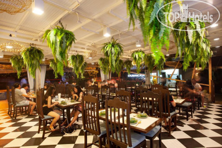 Столовка с халявными завтраками от отеля на 1м этаже 5го корпуса (4го здания). Еще в 3м здании (4м корпусе) на 1м этаже есть бар (без халявы даже по утрам). Рыночек справа от отеля так себе. Есть один навес с фруктами - 1 раз купили там - деваха пыталась обуть меня на 5 бат (10% от покупки), больше там не брали. В основном ходили направо от отеля. Недалече есть 7/11 - без вариантов станет и Вашим любимым магазином, если заселитесь в отель - других поблизости тупо нет. За ним есть кафеха - написано над ней "Karon Plaza" - самая дешевая. Везде до нее PadTai 120-130 бат, в ней 80-90 (зависит от вида мяса). Слева от кафехи (даже как бы на ее территории - вдавлен в кафеху) ларек с фруктами - брали в основном там, есть все фрукты, обувать не пытались, манго 40 бат, мангостины 30. Бабулька, которая по ночам дежурит, даже манго нахаляву вкинула и пыталась на тайском пояснить, чтоб я не ходил в другие ларьки, а только к ней :)