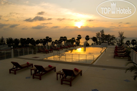 В коридорчике шкаф-вешалка с плечиками, выдвижной ящик, холодильник, чайник, фен. Сан узел с застекленным душем, плитка новая, полотенца белоснежные. Ходить слегка далековато, но мы же спортики и очень тихо в номере, уютно, решили не менять. На рецепшене нам выдали 2 ключ-карты и мы одну оставляли в приемнике, чтоб кондиционер охлаждал. Нас подвезли на гольф-каре с чемоданами до входа в 5 корпус. Залог просили 1000батт, можно в долларах. Уставшие, но довольные пошли опробовать бассейн на крыше 2 корпуса, над рецепшеном. Бассейн небольшой, но достаточно глубокий и чистый. С крыши открывается хороший вид на Карон, на Будду, есть шезлонги, можно почилить. Покупались в бассейне, очень приятно после длительного перелета, расслабились. Нам все в отеле понравилось.