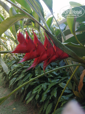 ТЕРРИТОРИЯ сравнительно небольшая, ухоженная и зеленая. Много деревьев и цветов. Есть ресепшен с зоной ожидания, трехэтажный корпус с номерами, несколько бунгало, бассейн с лежаками, парковка, терраса для чаепития и инфовстречи, а также ресторанчик.