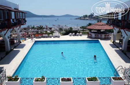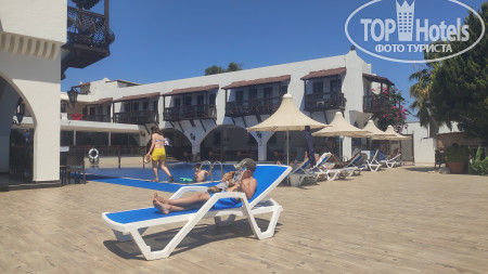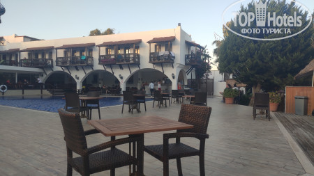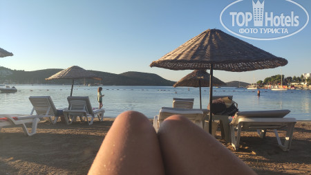 Отель пошарпанный, требует навести марафет, не помешает косметический ремонт, я бы как три звезды определила. Однако все мелкие недочёты компенсирует персонал. Очень приятный и отзывчивый персонал на всех уровнях, на ресепшен даже неожиданно обнаружилась русская девушка (очень нам помогала по всем вопросам за что ей большое спасибо). Есть садовник, туркмен, хорошо говорит по-русски (даёт знать о себе советское прошлое) помогал нам скрасить вечера приятной беседой, так же дал нам много ценных советов (прошенных) по ориентации в городе, даже потратил своё время и проводил нас до аренды авто и салона сотовой связи, помог договориться с местными (как переводчик) обо всех необходимых условиях пользования услугами (совершенно бесплатно, просто по доброте) - в общем сделал наш отпуск комфортным и приятным. Улыбчивые и приятные бармены и официанты учили нас турецкому, шутили и развлекали. Приятно порадовало отсутствие анимации. Тихий, спокойный отель, никакой орущей музыки, только фоновая, хороший заход в море (и поглубже и по мельче и пирс с которого можно нырять), дно и пляж песчаные. Не так много шезлонгов и нет пляжных полотенец, однако мы место себе всегда находили. Территория отеля зелёная, очень уютно, создаётся ощущение тёплых улочек старого Греческого городка. Если немного приведут в порядок сантехнику всё будет на достойном уровне.