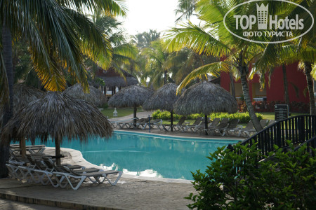 Мы прилетели в обед. Нам дали номер и отправили на кушать. За обедом сразу налили мамахуану, чудесная паста с морскими гадами,манго и другие тропические фрукты очень порадовали. Нас это настроило на благоприятный лад. В лобби чудесная соломенная крыша, прохладно, дали приветственные коктейли, интернет был только в лобби тоже. Но номер нам не понравился, была ванная довольно грязная, все как-то разбито, балконная дверь не закрывалась, а номер на 1 этаже к слову, с сейфом тоже были проблемы. Мы собрались и отправились на ресепшин. Но приветливая девушка на ресепшин все решила и переселила нас в другой корпус (второй отель Кариб). Мы отблагодарили ее шоколадкой. Номер был с видом на море, тихий. Нам все понравилось. Также окна выходили на соседний отель частично. Уборщик с соседнего отеля перекинул нам пару кокосов, было очень необычно, нам было приятно, его мы тоже отблагодарили Аленкой. Люди очень приветливые в отели, никто не спешит - это для кого-то проблема, но мы были на релаксе и полностью отдались этой неспешной атмосфере релакса. Отдельное впечатление это тропический уголок, буквально манговые заросли на территории отеля, там видели павлинов, варана, цаплей, множество черепах в водоеме, особенно вечером. Бегает всякая живность в виде уток. Это просто рай животных наяву, самые большие впечатления. Еще был замечательный бассейн с баром в воде. пенные вечеринки в бассейне. Анимация ненавязчивая вечерами. Коктейли с ромом. Чудесный кофе бар со всякими вкусняшками и мороженым. Множество бассейнов. Мясо было во всех вариациях, очень много тропических фруктов. Пляж - просто сказка, много пальм, у нас действительно райский отдых получился. Океан - теплейший. единственное водоросли убирали вручную, но нас это не особо смущало. С теплотой в сердце вспоминаем эту прекрасную поездку!