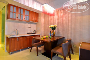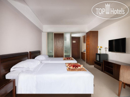 Сам по себе-обычный стандарт. Все нужное есть.Халаты,резиновые шлепки-недезинфицированные,полотенца разные и т.п. Уборка каждый день(время уборки может быть и утром и в обед) Нет холодильника-его заменяет маленький бар. Телевизор только с местным телевидением.(мы подключали свой ноут к телеку,чтоб посмотреть русские каналы)